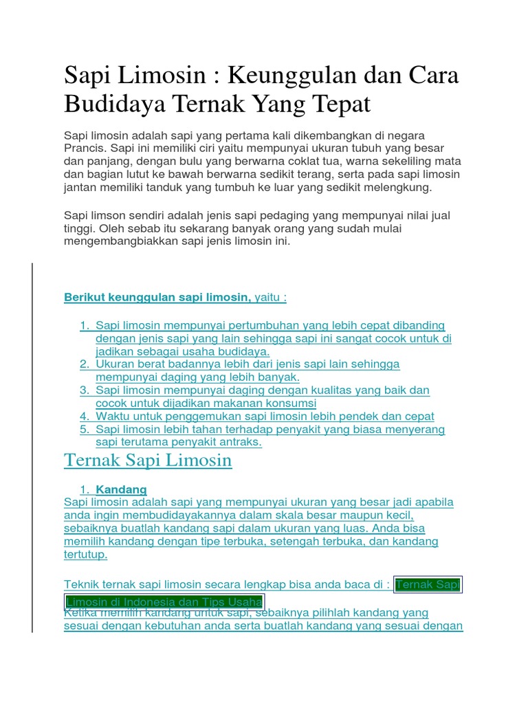 Penampakan dan postur sapi limosin memang berbeda dibanding sapi lokal asli indonesia lainnya. Update harga bibit bakalan sapi langsung dari kandang ilma supplier. Sapi limosin, simental, brahman, brangus, sahiwal dan sebagainya. Jika calon kandang berada di lingkungan dengan dataran. Sapi limosin memiliki harga yang sangat tinggi dan kualitas dagingnya memang tidak dapat diragukan lagi. Kandang sapi milik mas haji verdy terdapat sapi super kontes 4 ekor yang diberi nama senopati, somala, adeng dan semar. Jika anda kerepotan dmembawa sapi limosin ke tujuan. Seekor sapi jenis limosin di balikpapan, kalimantan timur, memiliki bobot hingga 1,2 ton. Buatlah kandang sapi yang sesuai dengan lingkungan tempat sapi di budidayakan. Kami menyediakan sapi2 limosin dengan berat mulai dari 300 kg sd 1000 kg, lokasi kandang di bekasi, harga terjangkau murah meriah dan di di anter. Sapi yang terberat dan terbesar di. Kamu bisa memilih kandang tipe tertutup, setengah terbuka, maupun tipe terbuka. 0%0% found this document useful, mark this document as useful.