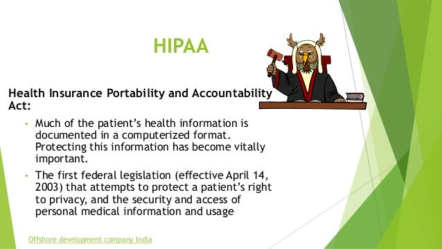 Though it is widely known as a medical privacy and data security law, hipaa was passed primarily to improve the health care system's efficiency and effectiveness. This law does not let group health plans charge higher rates because of a person's prior health status. In the u.s., the privacy rule of the health insurance portability and accountability act (hipaa,8) requires the strict regulation of protected health information for use in medical research. The privacy rule also requires doh to comply with florida laws that provide greater protection to patients. Health insurance portabiilty and accountability act (hipaa) is an act created by the u.s congress in 1996 to ensure the privacy of personal medical data.